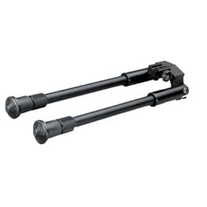 Aluminum bipod Spring-loaded legs extend from 9.5 to 13.5 Legs fold up Attaches with large coin-slotted screw Tilts